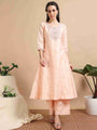 Add a touch of understated elegance to your ethnic collection with this Peach Anarkali set crafted from soft lychee silk. The delicate floral prints complement the warm peach hue beautifully, bringing a fresh and inviting vibe that's perfect for festive gatherings or special occasions.